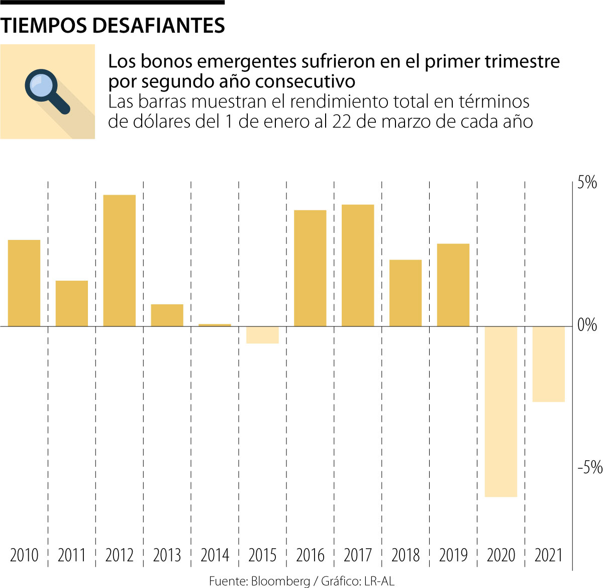 Si bien los mercados emergentes prosperaron en el segundo semestre de 2020 debido al debilitamiento del dólar y a un estímulo mundial récord, el aumento en los rendimientos estadounidenses en los últimos meses hace que el futuro parezca mucho menos favorable. Muchos países en desarrollo ahora se enfrentan a un grave dilema: necesitan financiar un mayor gasto para reactivar sus economías afectadas por la pandemia justo cuando los costos de endeudamiento comienzan a subir.