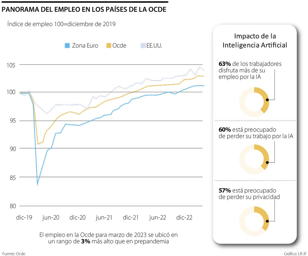 En el último trienio a los datos del empleo les han pegado dos factores clave: la pandemia y el auge de la Inteligencia Artificial y son, precisamente, los puntos principales que aborda el último reporte de la Organización para la Cooperación y el Desarrollo Económicos (Ocde).