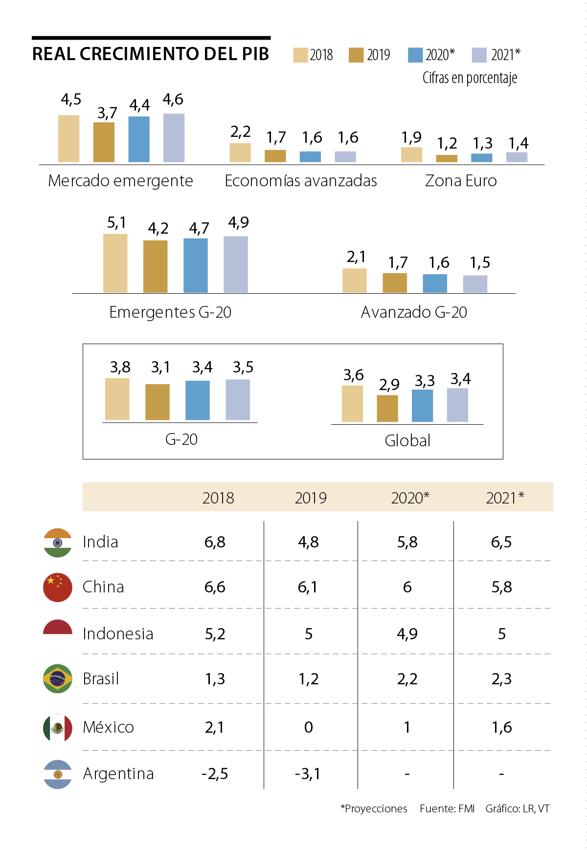 Pese a que los anteriores países son los que crecerán más al cierre de este año, uno de los datos que más llamó la atención de los medios internacionales es que el crecimiento económico de China sobrepasará el crecimiento que tendrán los países del G-20, el cual se prevé que sea de 3,4% al final de 2020.