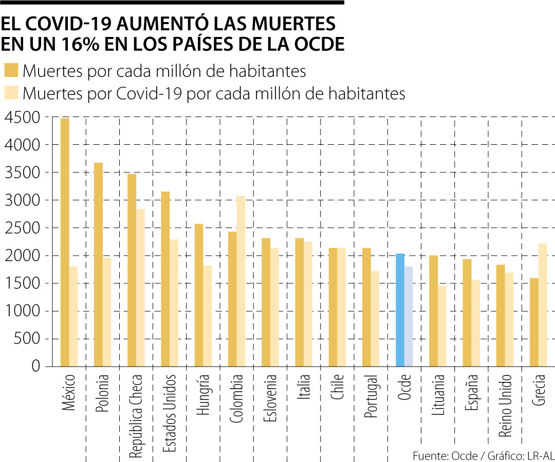 La Organización para la Cooperación y el Desarrollo Económicos (Ocde) divulgó ayer un estudio que muestra que la pandemia provocó un aumento del 16% en las muertes esperadas entre los 38 miembros de la organización.