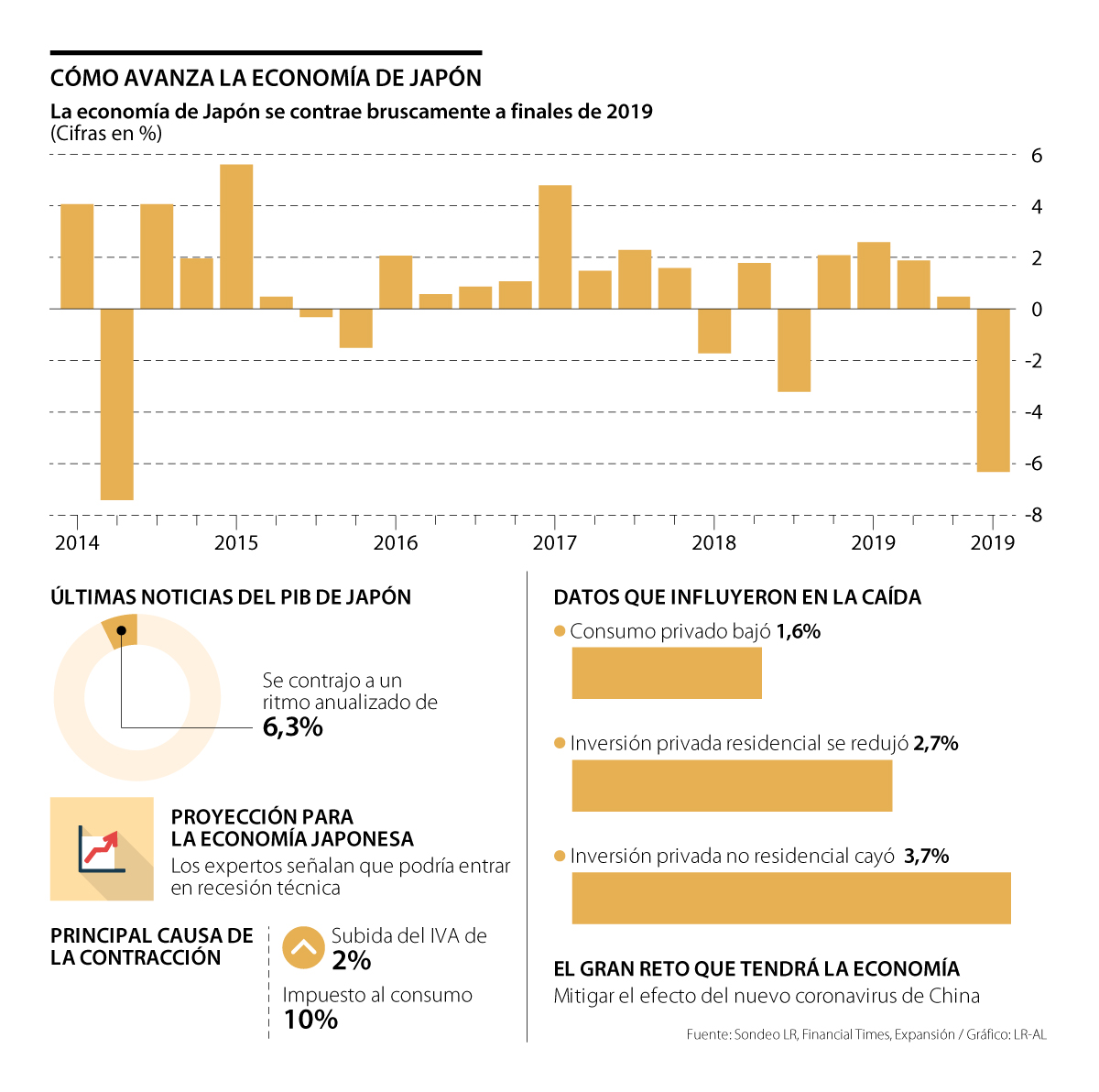La tercera economía más grande del mundo, Japón, generó preocupación entre los analistas internacionales luego de informar que su producción se contrajo a un ritmo anualizado de 6,3%, según los datos del Producto Interior Bruto publicados el lunes. Según reseñó Expansión, “los economistas han advertido que Japón va camino de una recesión técnica, ya que el impacto del brote del coronavirus amenaza con agravar un trimestre final de 2019 nefasto”.