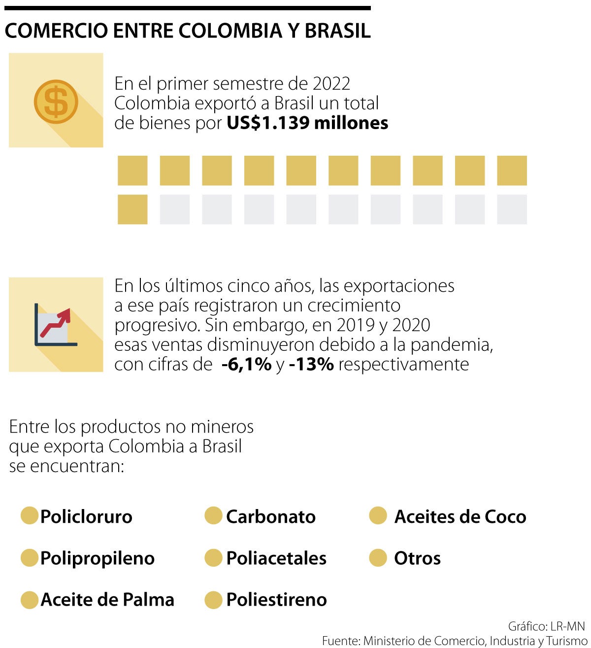 Entre los productos no mineros que exporta Colombia a Brasil se encuentran: policloruro, polipropileno, aceite de palma, poliestireno, carbonato, poliacetales y aceites de coco, entre otros.