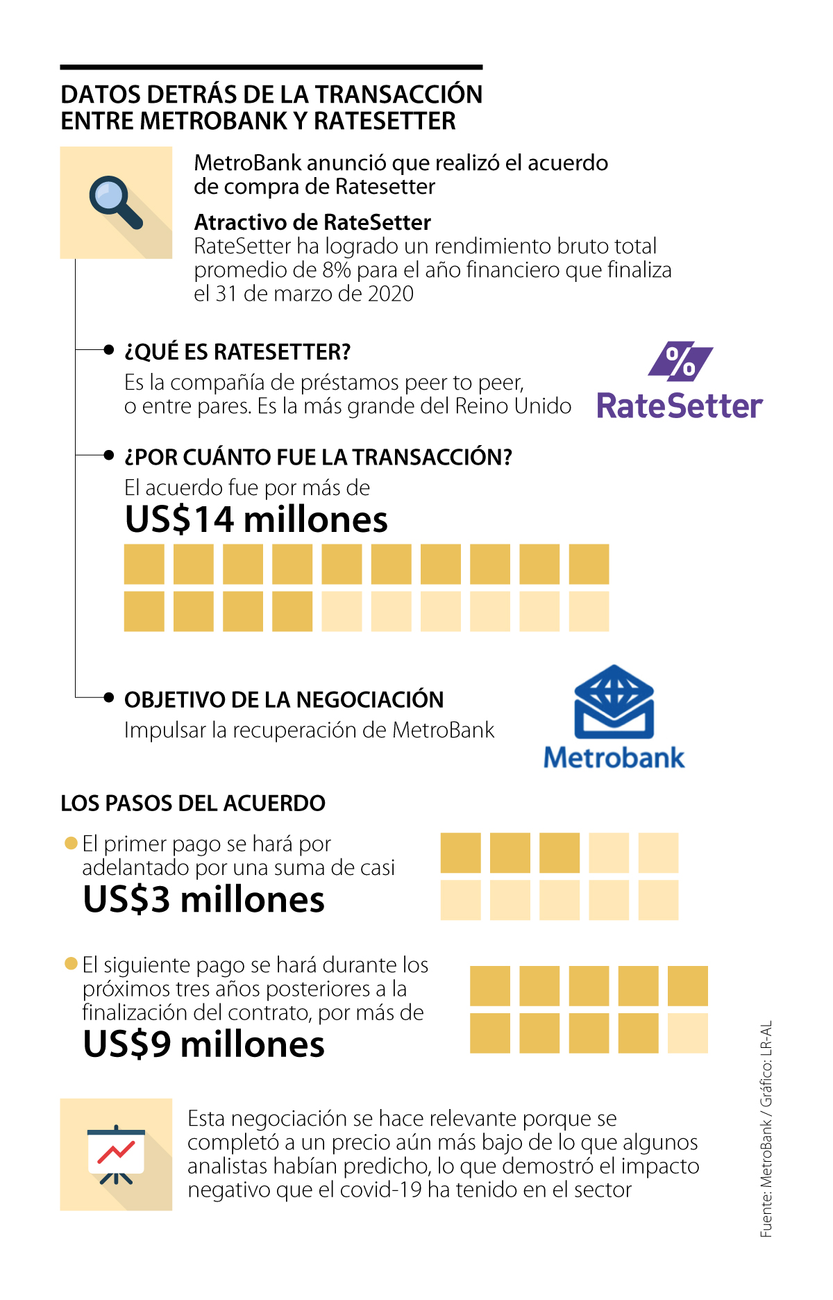 MetroBank anunció que realizó acuerdo de compra con la prestamista Ratesetter de Reino Unido por más de US$14 millones