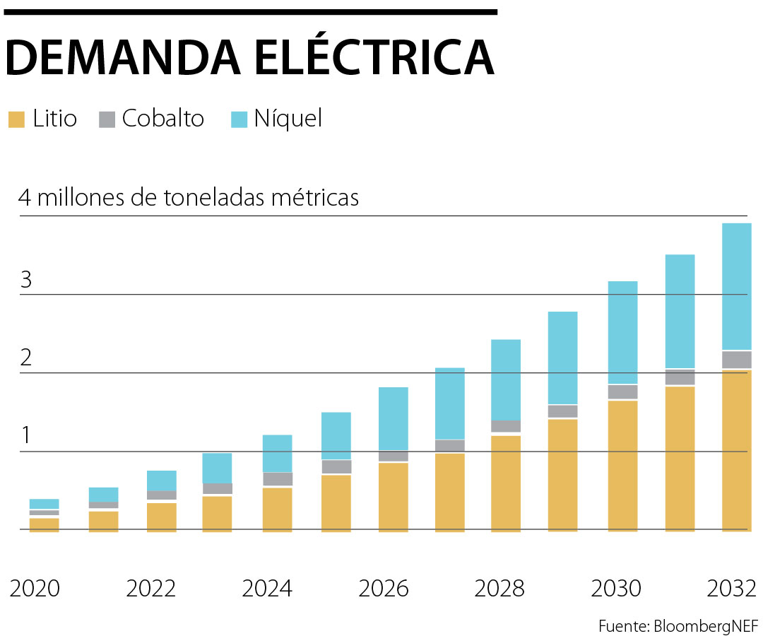 El litio es un producto básico de cara al futuro fundamental para la descarbonización global. Los fabricantes de automóviles más grandes, desde Tesla Inc. hasta Volkswagen AG y Toyota Motor Corp., necesitan un suministro cada vez mayor de materiales de batería para acelerar el lanzamiento de los vehículos eléctricos, y BloombergNEF espera que la demanda de minerales en paquetes de iones de litio crezca cinco veces por 2030.