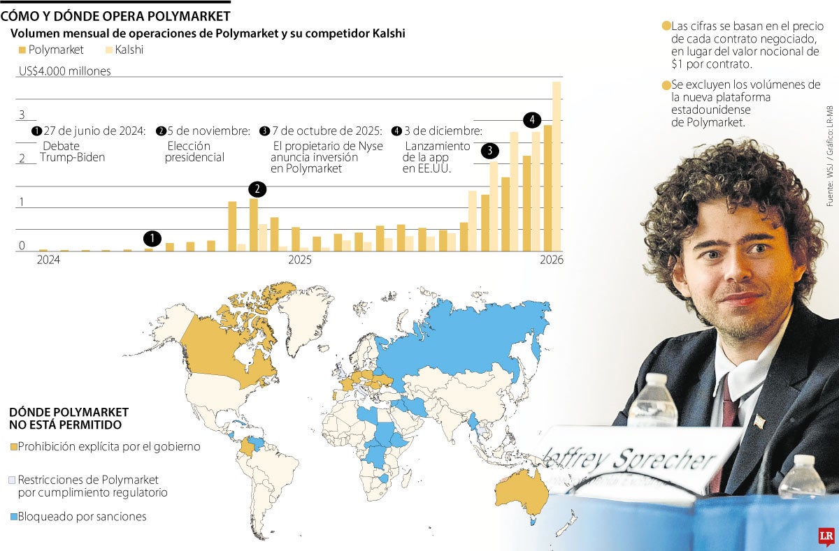 La plataforma ha registrado, en eventos de alto impacto, volúmenes que superan los US$1.000 millones en apuestas concentradas en un solo proceso electoral. Durante el ciclo presidencial de 2024, los volúmenes mensuales llegaron a superar los US$2.000 millones, y tras las elecciones se han mantenido por encima de los US$1.000 millones mensuales.