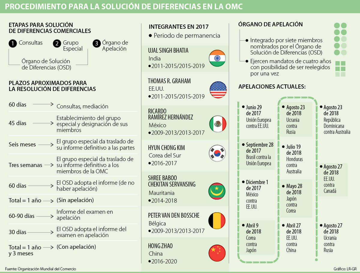 “Se tienen que tomar acciones concretas, el Órgano de Apelación está a punto de ser asfixiado”, asegura Ramírez Hernández, quien aún no ha sido reemplazado por el OSD. Para el abogado, desaparecer el Órgano de Apelación es como “dejar lisiada” a la OMC. “Es no tener a quién reclamar que no se cumplen las normas, puede ser el fin del mecanismo de solución de controversias”, comenta el funcionario, quien fue presidente del OA en 2013 y 2014.