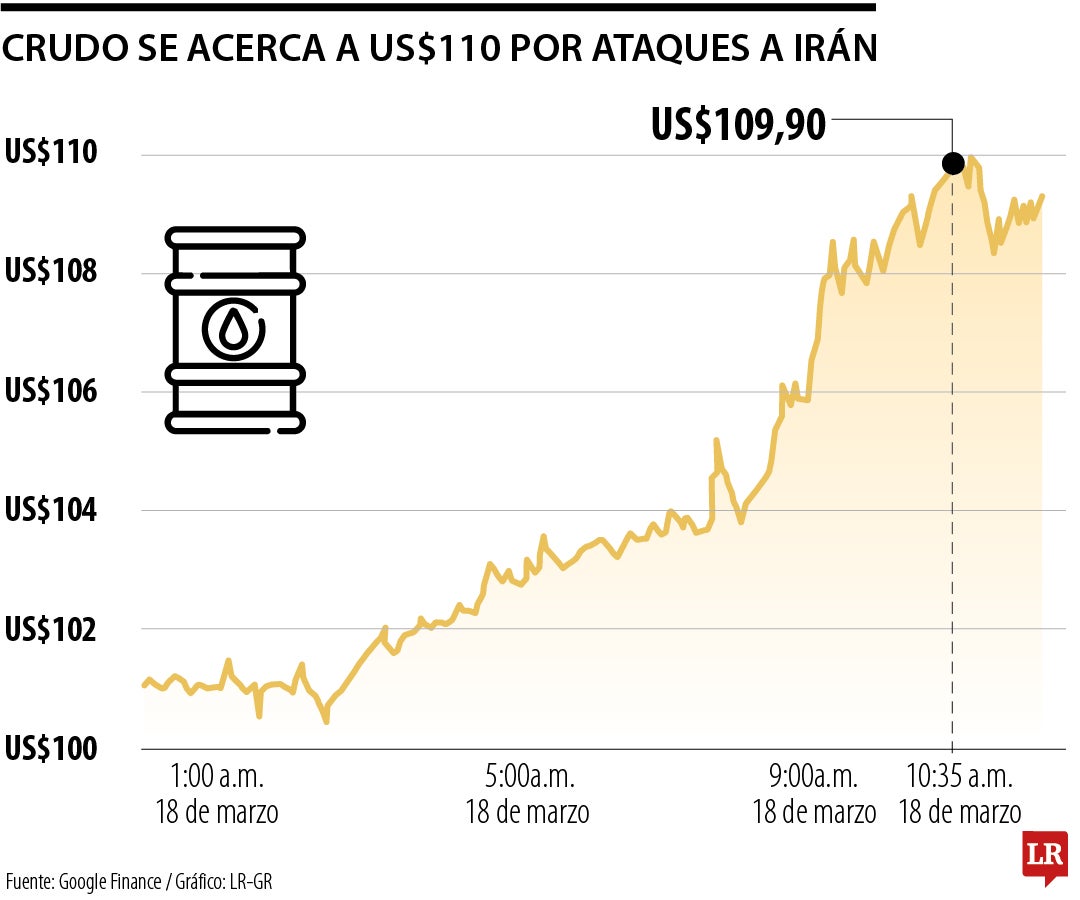 Los precios del petróleo se dispararon hasta US$109,9 después de que Israel atacara el yacimiento de gas de South Pars en Irán, que representa un tercio de la mayor reserva mundial de gas natural y que es compartida con Qatar.