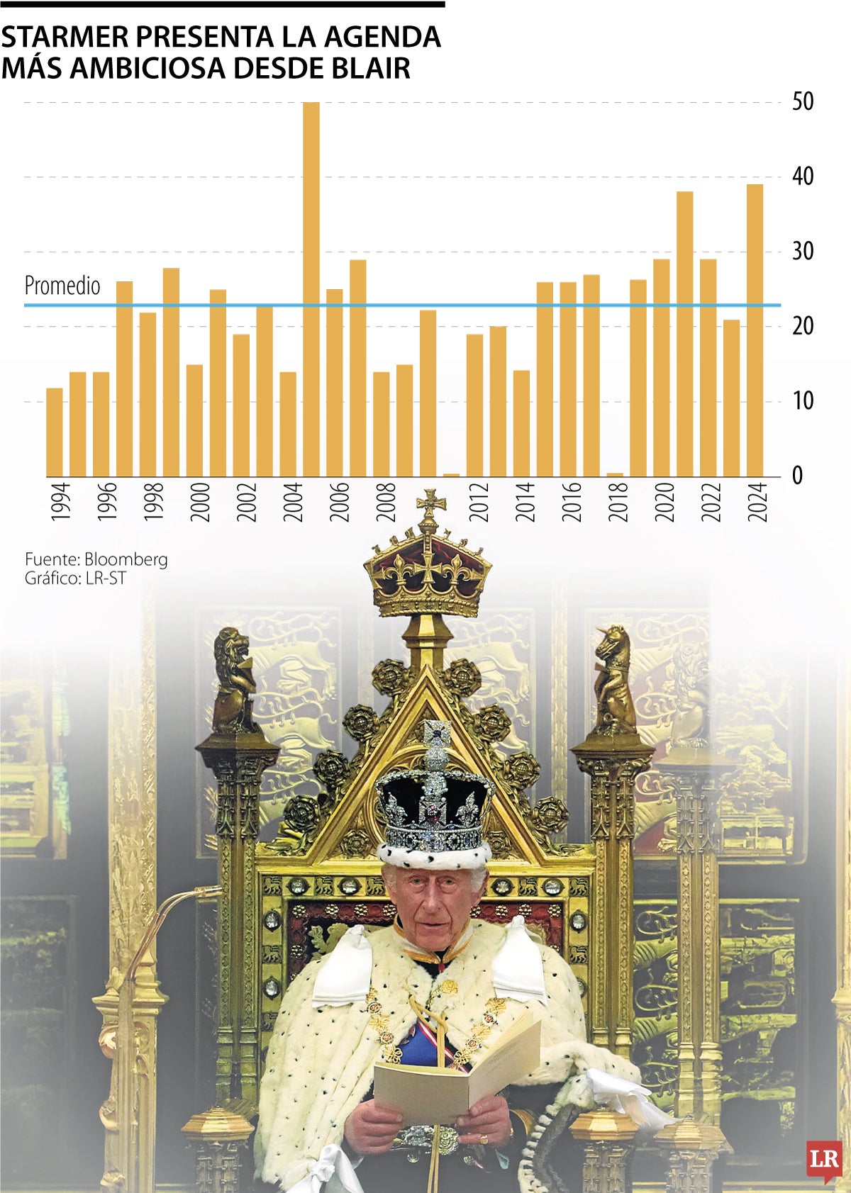 En lo que se considerará un cambio drástico respecto de la administración conservadora anterior, Starmer anunció 39 proyectos de ley en el Discurso del Rey