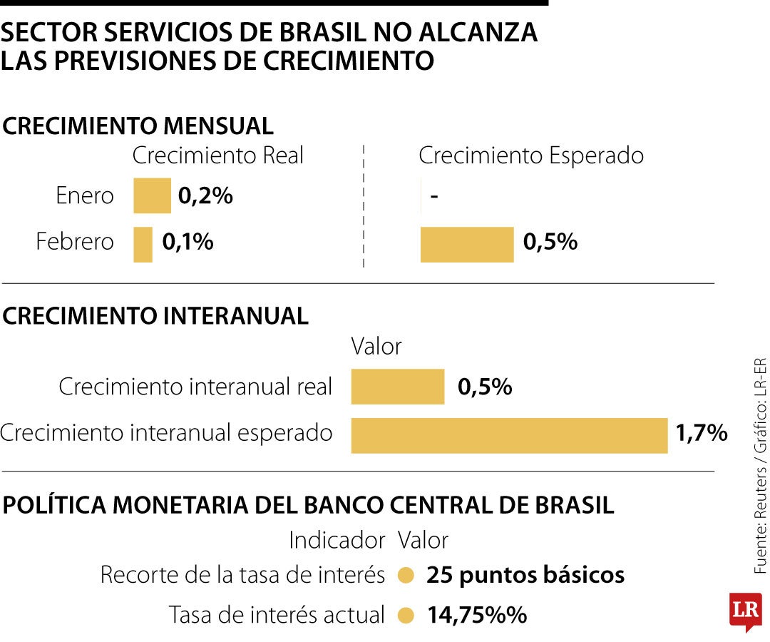 La actividad del sector servicios de Brasil creció menos de lo esperado en febrero en comparación con el mes anterior, según datos publicados el martes por el Instituto Brasileño de Geografía y Estadística (Ibge).
