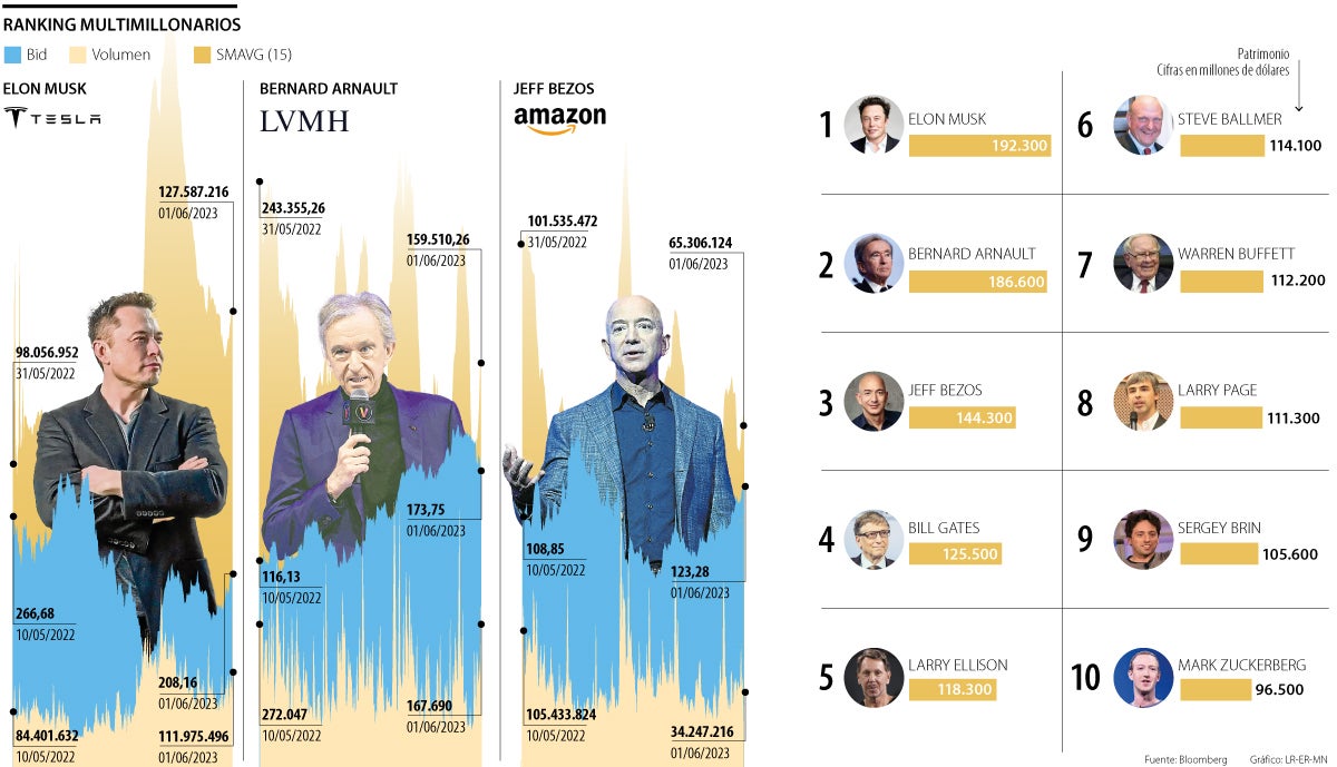 El también dueño de Twitter logró amasar una fortuna de US$192.300 millones; en el listado también aparecen Bernard Arnault y Jeff Bezos