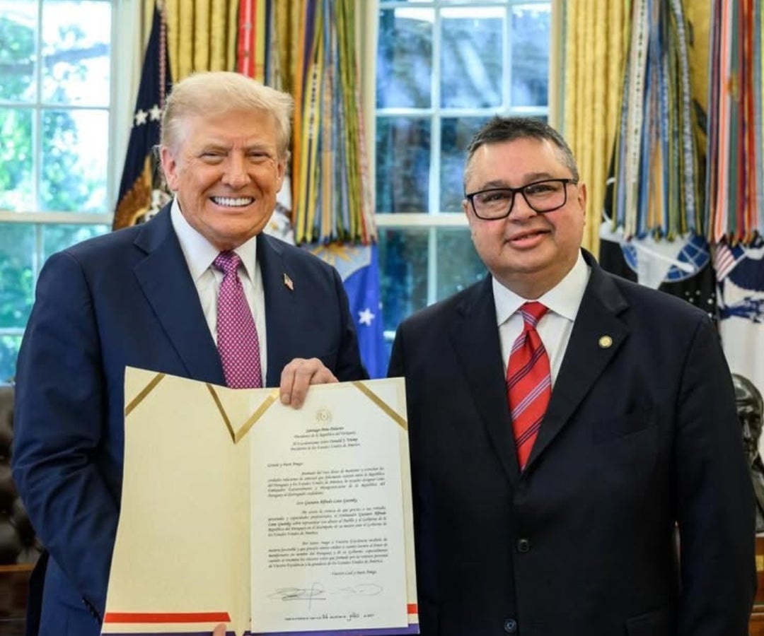 El embajador de Paraguay en Estados Unidos, Gustavo Leite, entregó sus cartas credenciales al presidente Donald Trump en una ceremonia oficial realizada en Washington D.C., según confirmó la Cancillería Nacional.