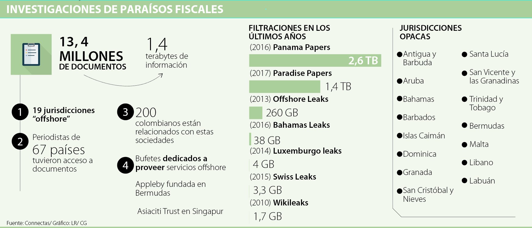 De acuerdo con los Paradise Papers, una filtración de 13,4 millones de documentos revelada por el Consorcio Internacional de Periodistas de Investigación (Icij), son más de 200 colombianos relacionados con sociedades instaladas en países con beneficios fiscales. Además, nombran grandes empresas del sector energético como, Ecopetrol, EPM, ISA , GEB o Glencore, que han constituido reaseguradoras cautivas en Bermudas.