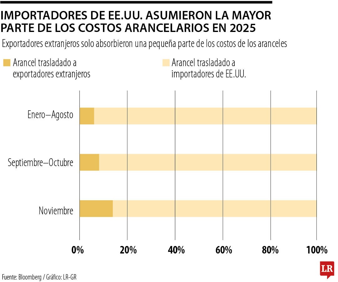 Utilizando datos hasta noviembre de 2025, el estudio concluye que aproximadamente el 94% de los costos arancelarios se trasladaron a las empresas y los consumidores estadounidenses en los primeros ocho meses del año.