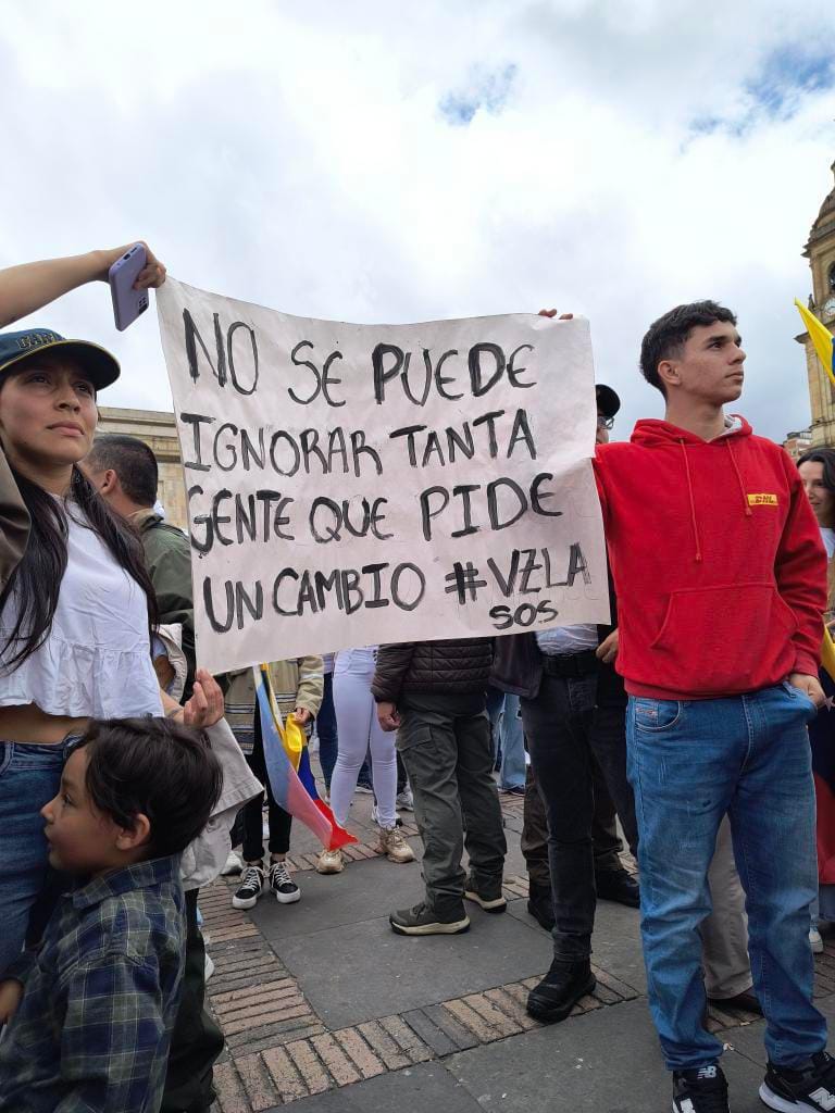 Venezolanos que residen en Bogotá decidieron congregarse en la Plaza Bolívar de Bogotá para expresar su opinión en medio de lo que ocurre con las elecciones presidenciales de Venezuela.