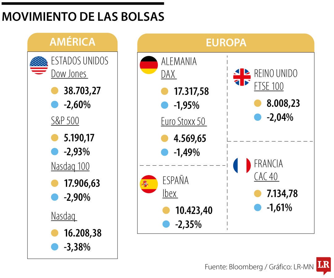 Luego de las 3:00 p.m. las bolsas en Estados Unidos cerraron. Así como en Europa, los principales índices terminaron en negativo.