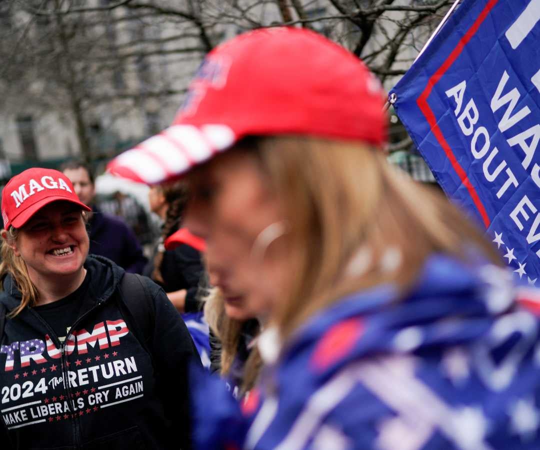 Los partidarios del expresidente Donald Trump se manifiestan frente al Tribunal Penal de Manhattan. Foto: Reuters
