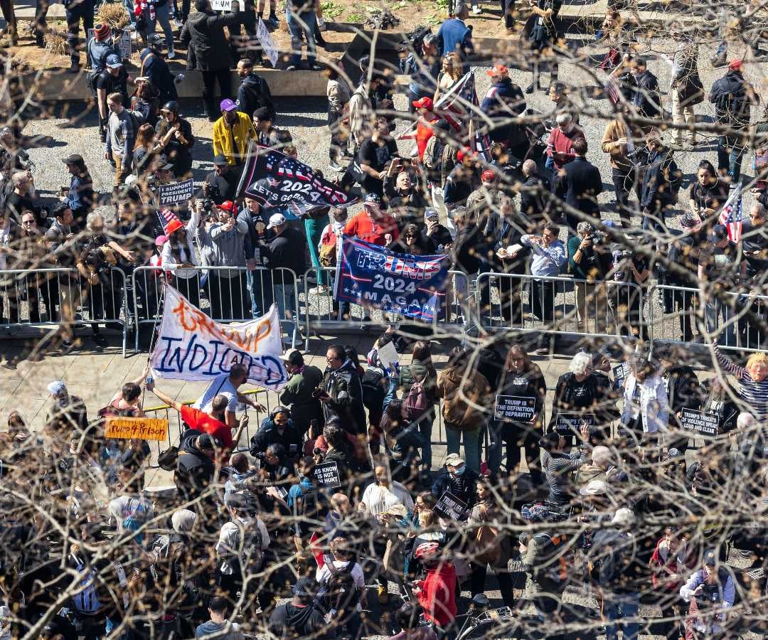Con tantos manifestantes que estaban en contra del expresidente Trump, así como un fuerte número de seguidores que lo aplaudieron, el empresario imputado llegó a la Corte de Manhattan. Así se legaliza su estatus de arrestado por la Fiscalía del Distrito de Nueva York.