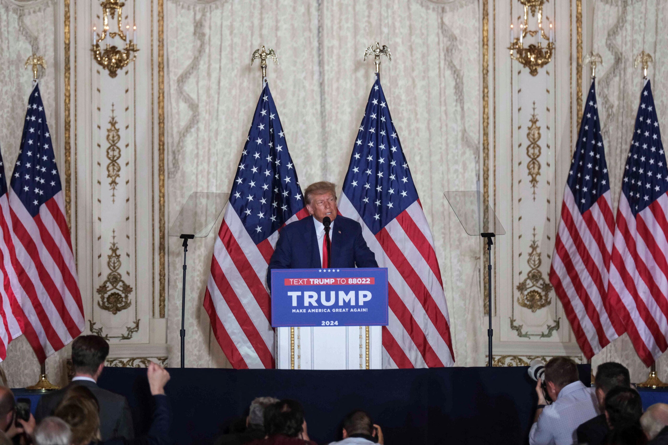 El ex presidente de Estados Unidos dio inició a su discurso a las 8:26 p.m hora Florida, desde Mar-a-lago, luego de su comparecencia en Nueva York en la que se le acusó de 34 cargos.