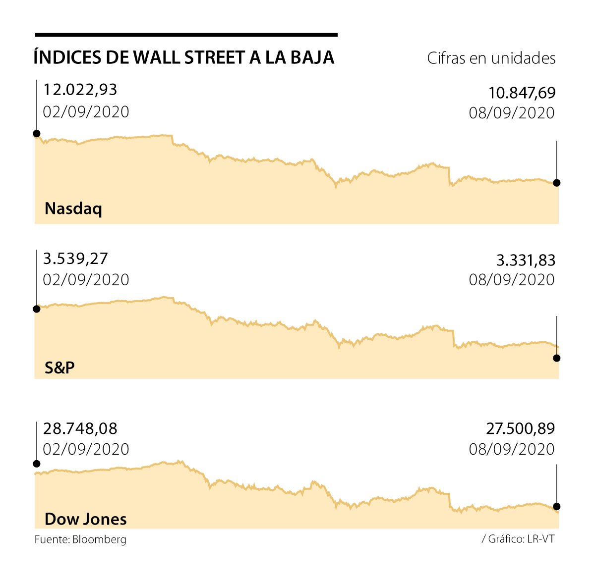 Tesla , otro de los más destacados del año, tuvo el peor día de su historia, con una caída de 21%, o US$88,11, a US$330,21. S&P Dow Jones Indices pasó por alto el viernes al fabricante de automóviles eléctricos para su inclusión en el S&P 500, que muchos inversores habían apostado que daría otro impulso a las acciones. Sus acciones han caído un 34% en septiembre, pero aproximadamente se han cuadriplicado en 2020.
