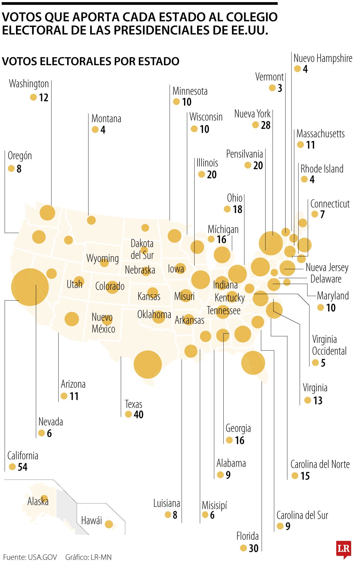 El sistema electoral de este país es indirecto y, en su diseño, a cada estado le corresponde una cantidad determinada de delegados que votarán en el Colegio Electoral, un proceso que definirá quién llega a la Casa Blanca.