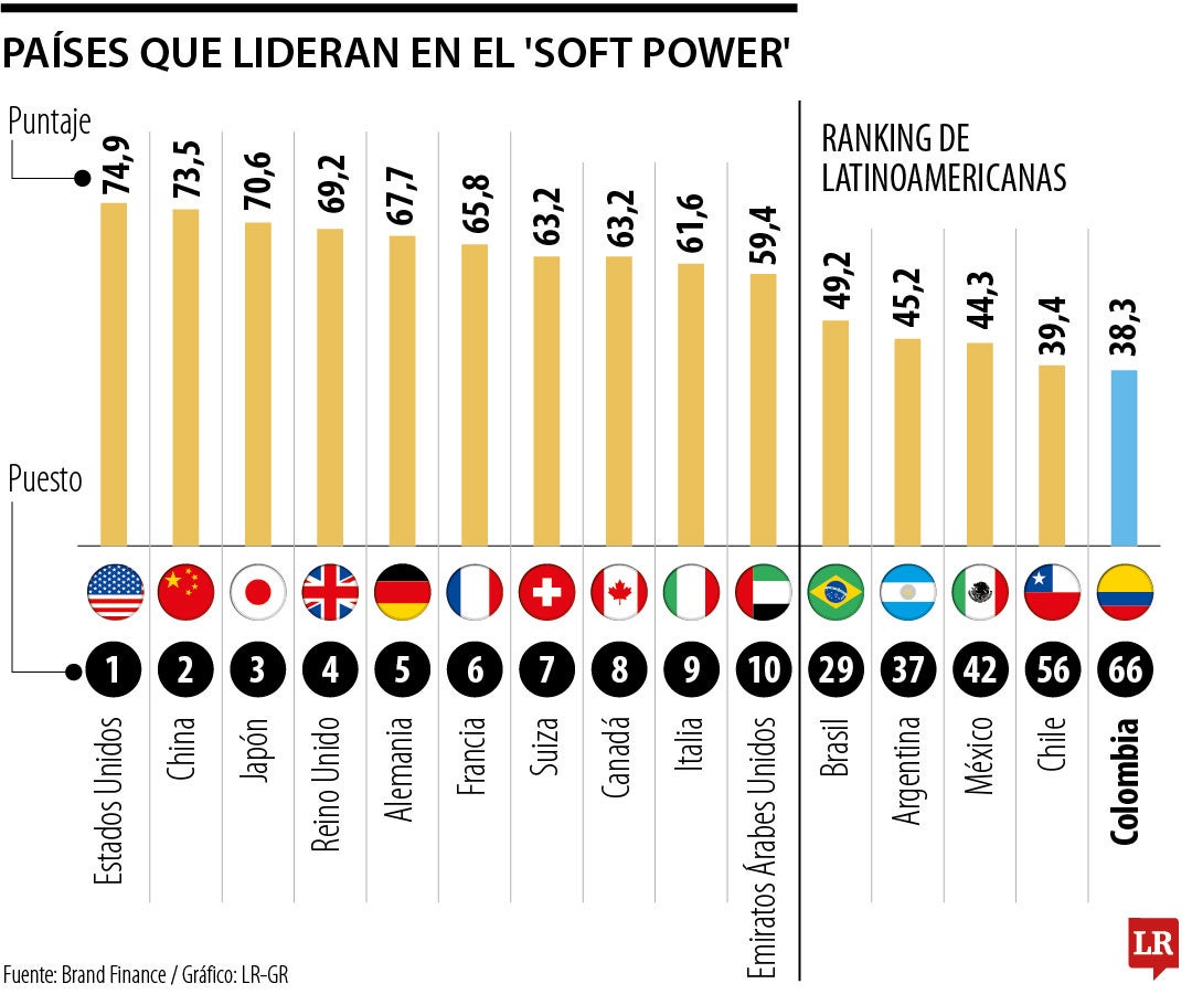 En la región, el desempeño es heterogéneo, con naciones que logran capitalizar su identidad cultural frente a los desafíos de reputación. Brasil fue puesto 29 global con 49,2 puntos gracias a que su soft power se apoya en su inmensa riqueza cultural y su herencia deportiva, ocupando el primer lugar mundial en el ranking específico de "Líder en Deportes".