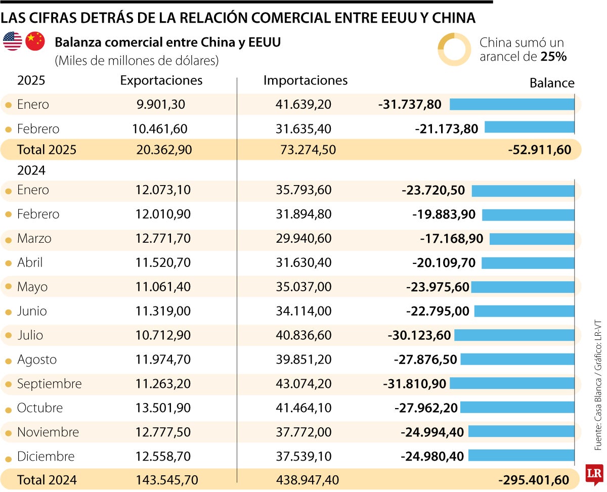 Las cifras comerciales entre Estados Unidos y China.