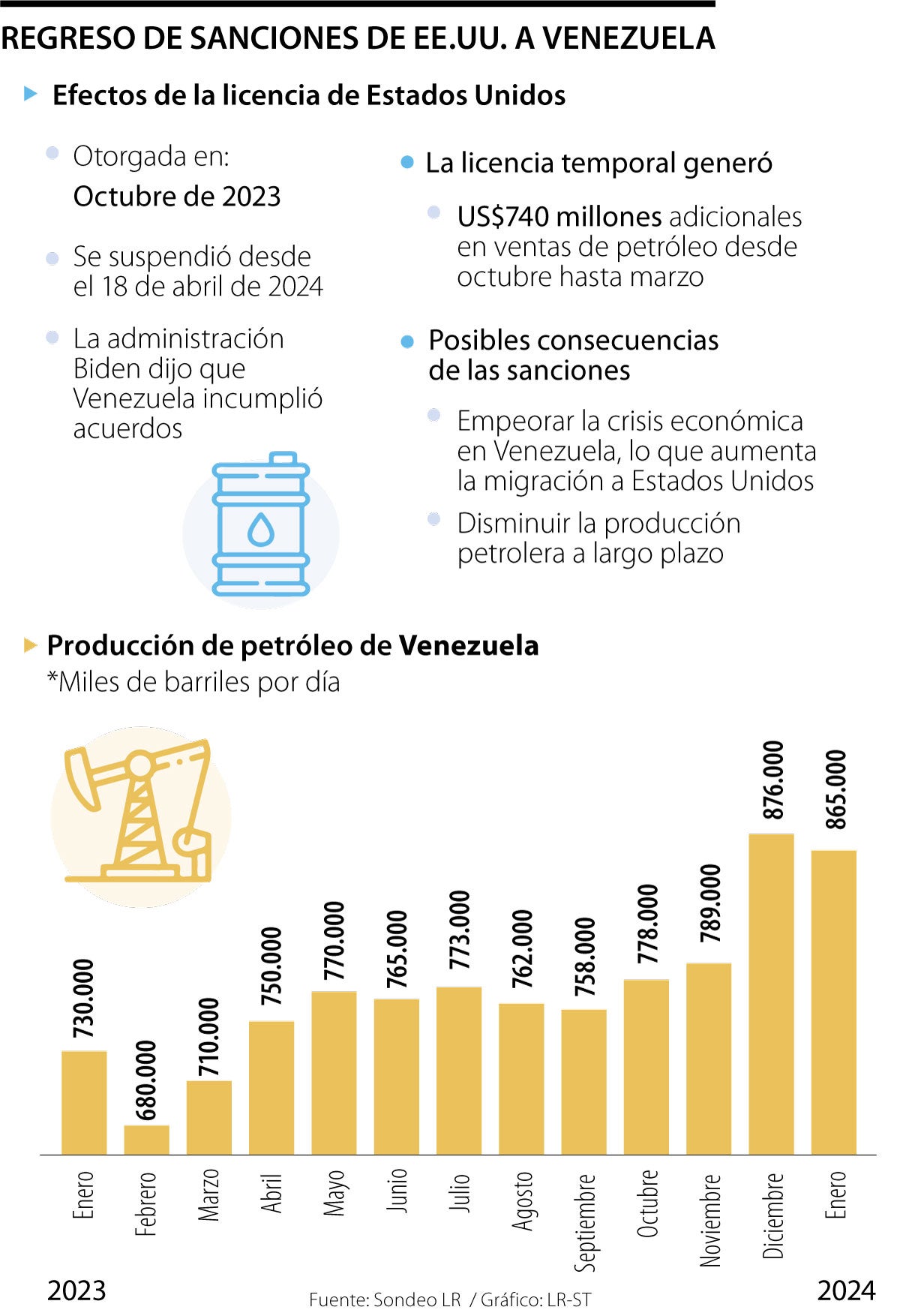 La administración del presidente de EE.UU., Joe Biden, volvió a imponer sanciones petroleras a Venezuela, poniendo fin a un indulto de seis meses, después de determinar que el régimen de Nicolás Maduro no cumplió un acuerdo para permitir una votación más justa en las elecciones programadas para julio.