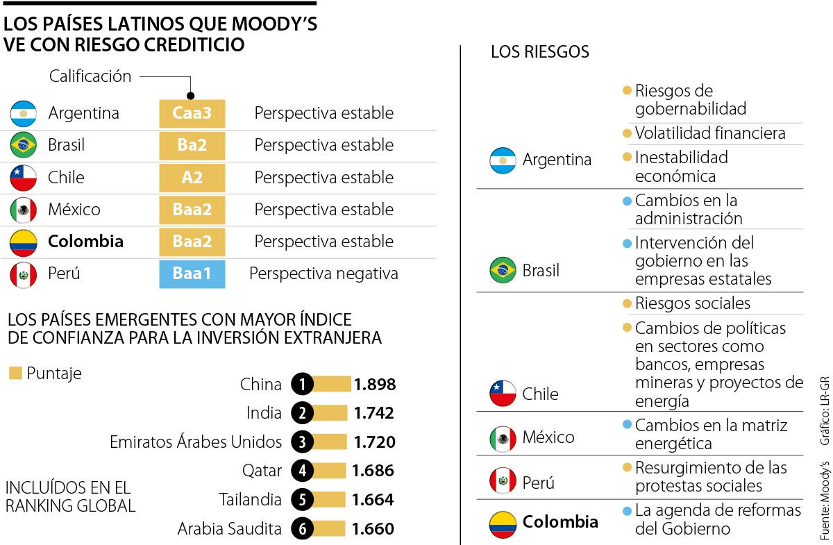 Un nuevo informe de Moody’s, sobre monitoreo de riesgo crediticio en la región, puso en alerta a seis economías de América Latina. Por las reformas que se adelantan, en la lista se encuentra Colombia.