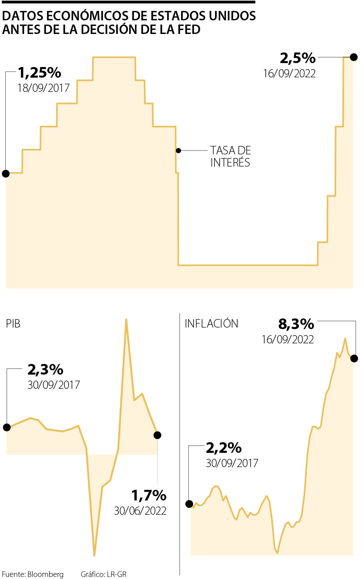 La decisión elevaría el rango objetivo para su referencia de política monetaria de 3% a 3,25%, con lo cual se espera que las proyecciones de la Fed publicadas en la reunión muestren el límite superior del rango en 4% para fin de año y que se mantenga elevado 2023, antes de que los recortes en 2024 lo lleven de vuelta al 3,6%.