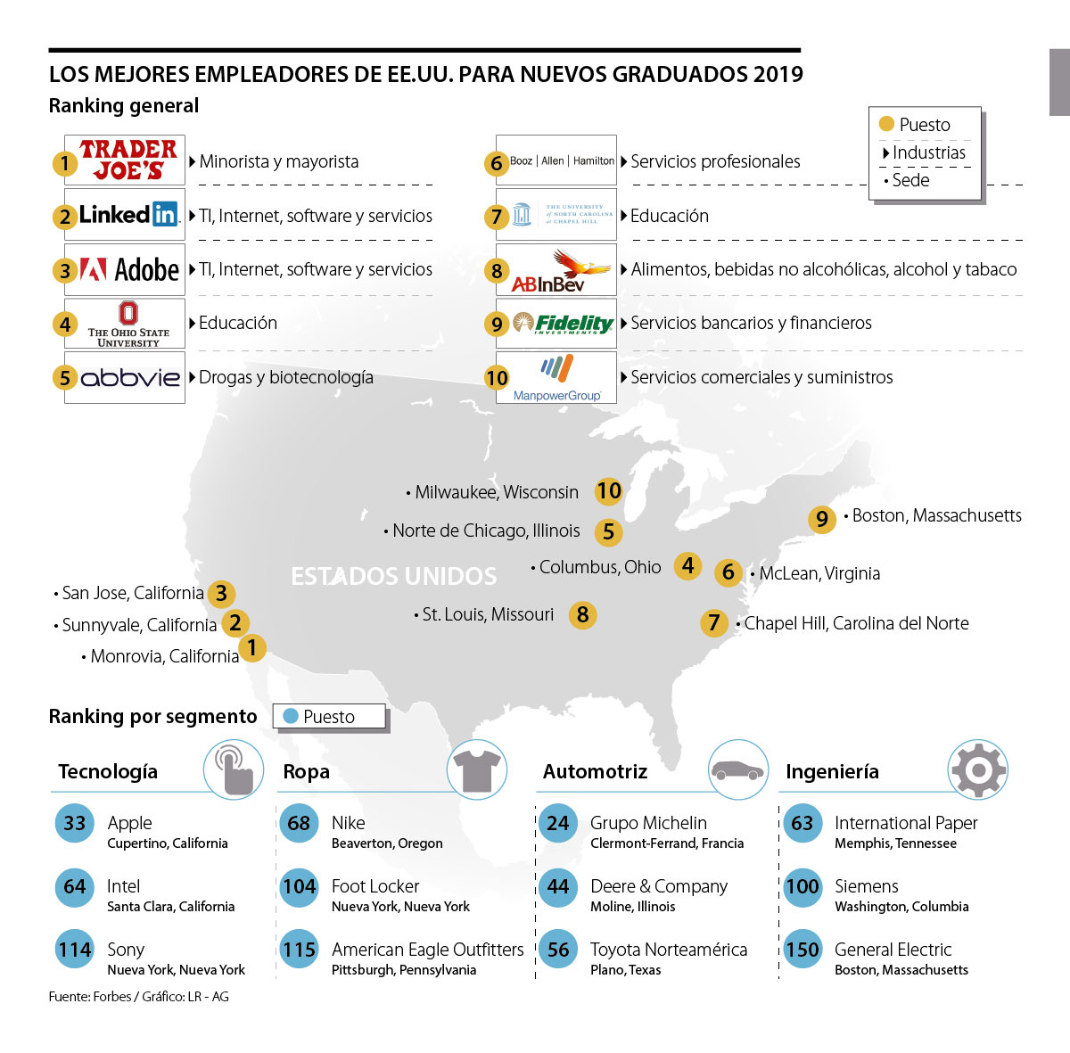 El último ranking elaborado por Forbes así lo demuestra. La publicación sacó un listado de cuáles eran las mejores empresas en Estados Unidos para los jóvenes recién graduados.