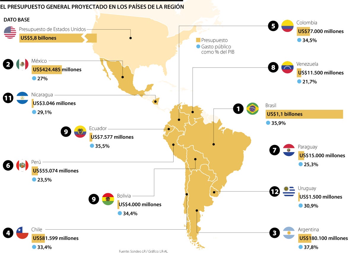 Este año, las 12 economías principales de Latinoamérica tienen planificado gastar alrededor de US$1,77 billones. Ese es el monto de inversión destinado bien sea para educación, salud, plan militar o, en general, gasto social.