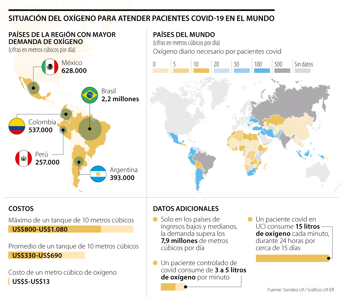 Allí, el problema no ha sido solamente el desabastecimiento, que durante febrero dejó a 18 hospitales sin suministro durante tres días, sino también el incremento desbordado de los precios de los tanques de oxígeno. El tanque de diez metros cúbicos puede llegar a costar entre US$330 y US$690, mientras que el metro cúbico se comercializa entre US$5 y US$13.