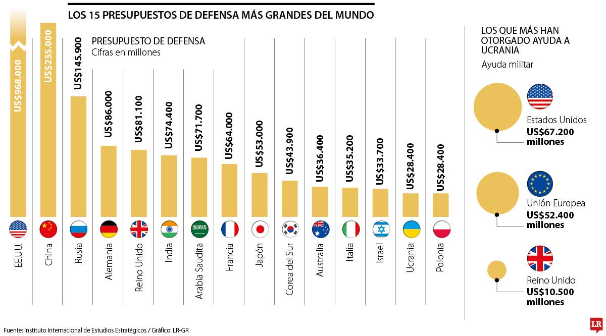 Para Ucrania, la retirada del apoyo de EE.UU. significa un golpe fuerte, toda vez que el país de Trump lidera el ranking de las naciones que más invierten en defensa en el mundo y qué más apoyo destinaban a Zelenskí.