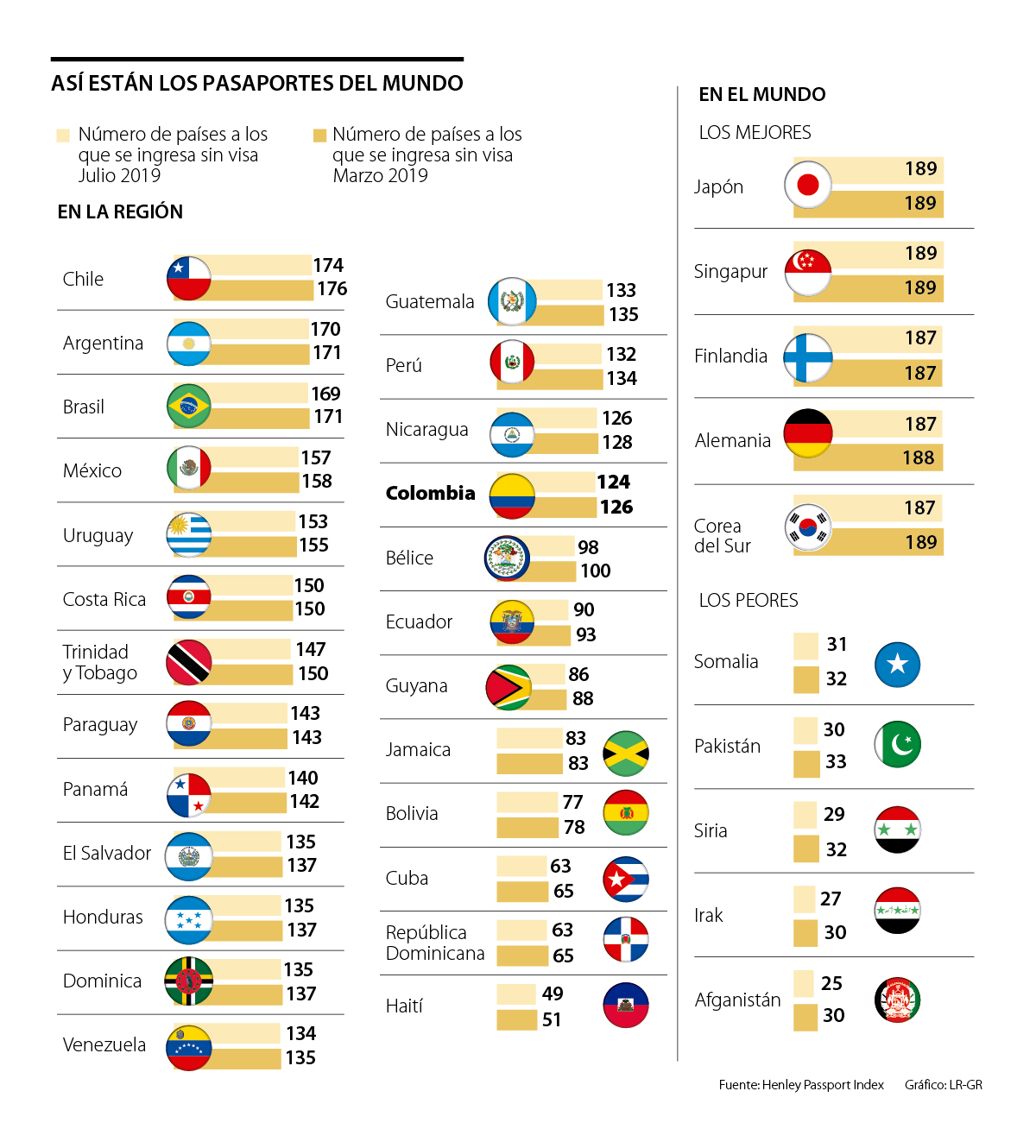 Un reporte de Henley & Partners reveló que con el pasaporte colombiano se puede ingresar a 124 destinos sin visa, lo que ubica al país en la casilla 45 entre las demás geografías