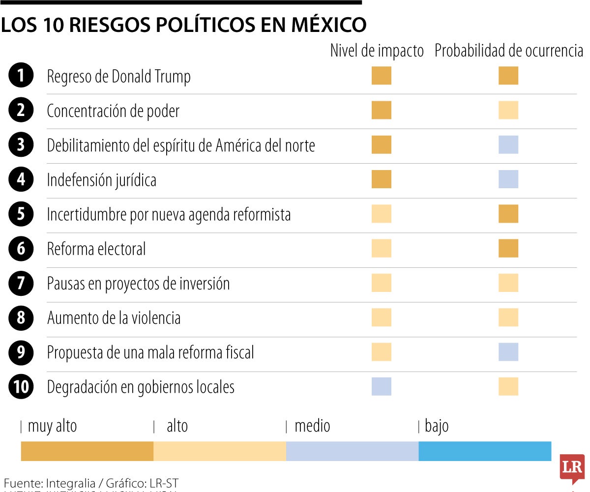 Uno de los riesgos más destacados es el regreso de Donald Trump a la Casa Blanca. Este escenario podría intensificar las tensiones diplomáticas y comerciales, afectando las relaciones con Estados Unidos. A nivel interno, el gobierno de Claudia Sheinbaum enfrentará la implementación de reformas laborales, medioambientales y administrativas.