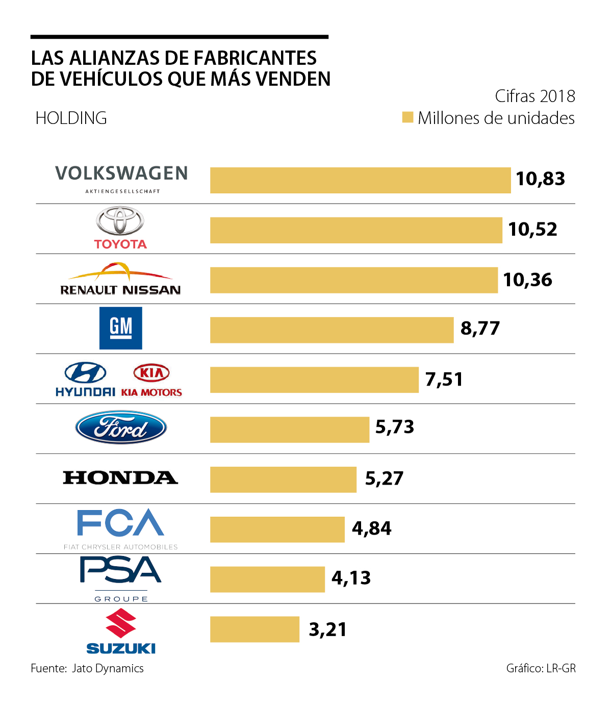 Fiat Chrysler es actualmente el octavo grupo automotor que más ensambla vehículos en el mundo (con 4,84 millones de unidades al cierre de 2018). Si se le suman la alianza Renault-Nissan-Mitsubishi, que a diciembre de 2018 fabricaron 10,36 millones de unidades, se integraría un emporio de más de 15 millones de vehículos anuales.