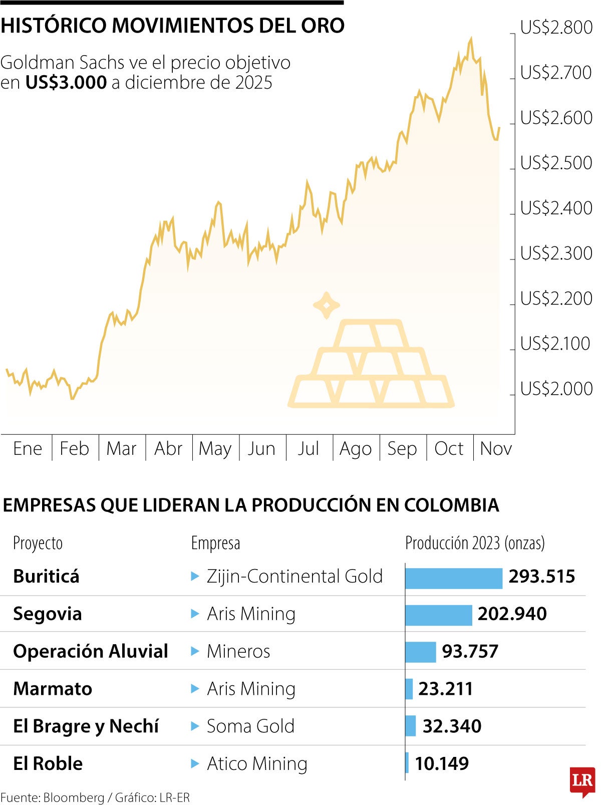 El oro ha protagonizado un fuerte repunte este año (más de US$2.600 ayer) antes de retroceder inmediatamente después de la victoria electoral de Trump, que impulsó al dólar. El avance de la materia prima se ha visto apuntalado por el aumento de las compras del sector oficial y el giro de la Fed hacia una política más expansiva. Goldman dijo que un gobierno de Trump también podría ayudar al lingote.