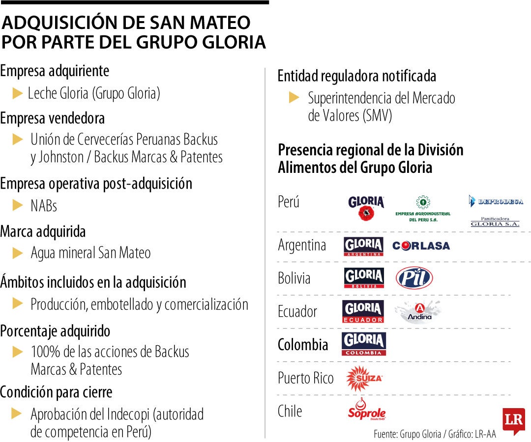Grupo Gloria, a través de Leche Gloria, anunció la adquisición del negocio de agua mineral San Mateo, tras un acuerdo con Backus