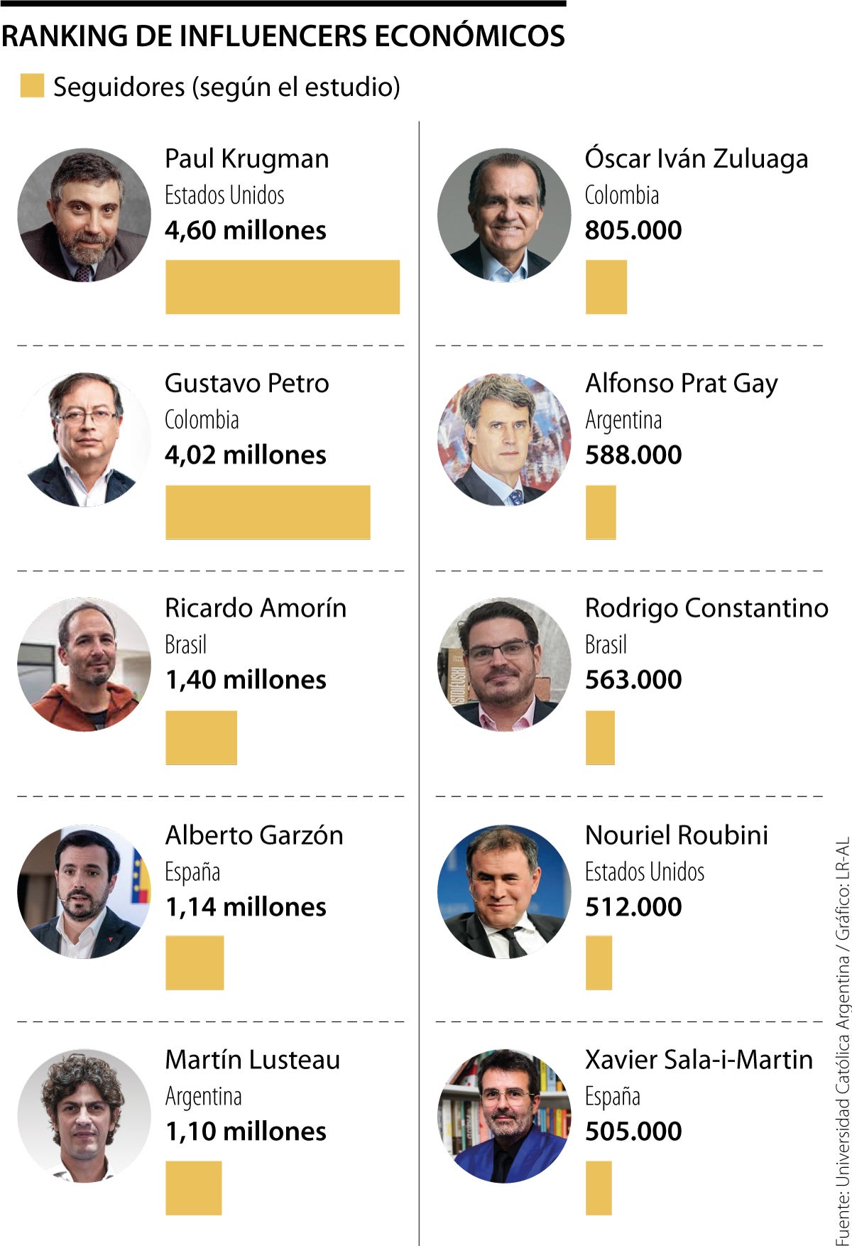 En el listado también figuran Paul Krugman, de EE.UU. y Ricardo Amorín, de Brasil. El estudio mide el número de seguidores en Twitter