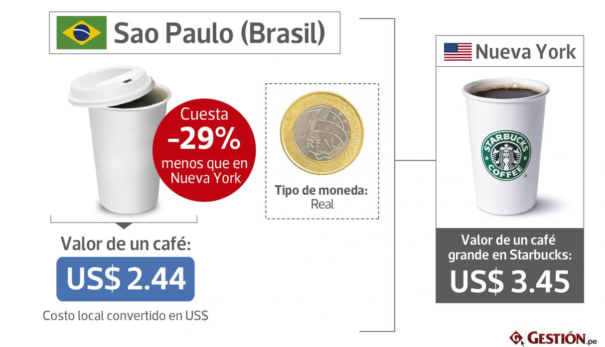 El estudio desarrollado por The Wall Street Journal utiliza el precio del café para estimar el valor de una moneda en diversos lugares del mundo