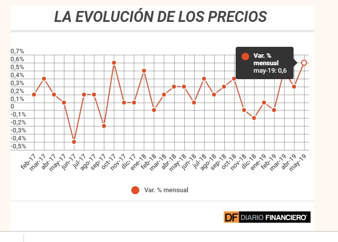 El incremento en el quinto mes del año fue el más alto desde noviembre de 2017.