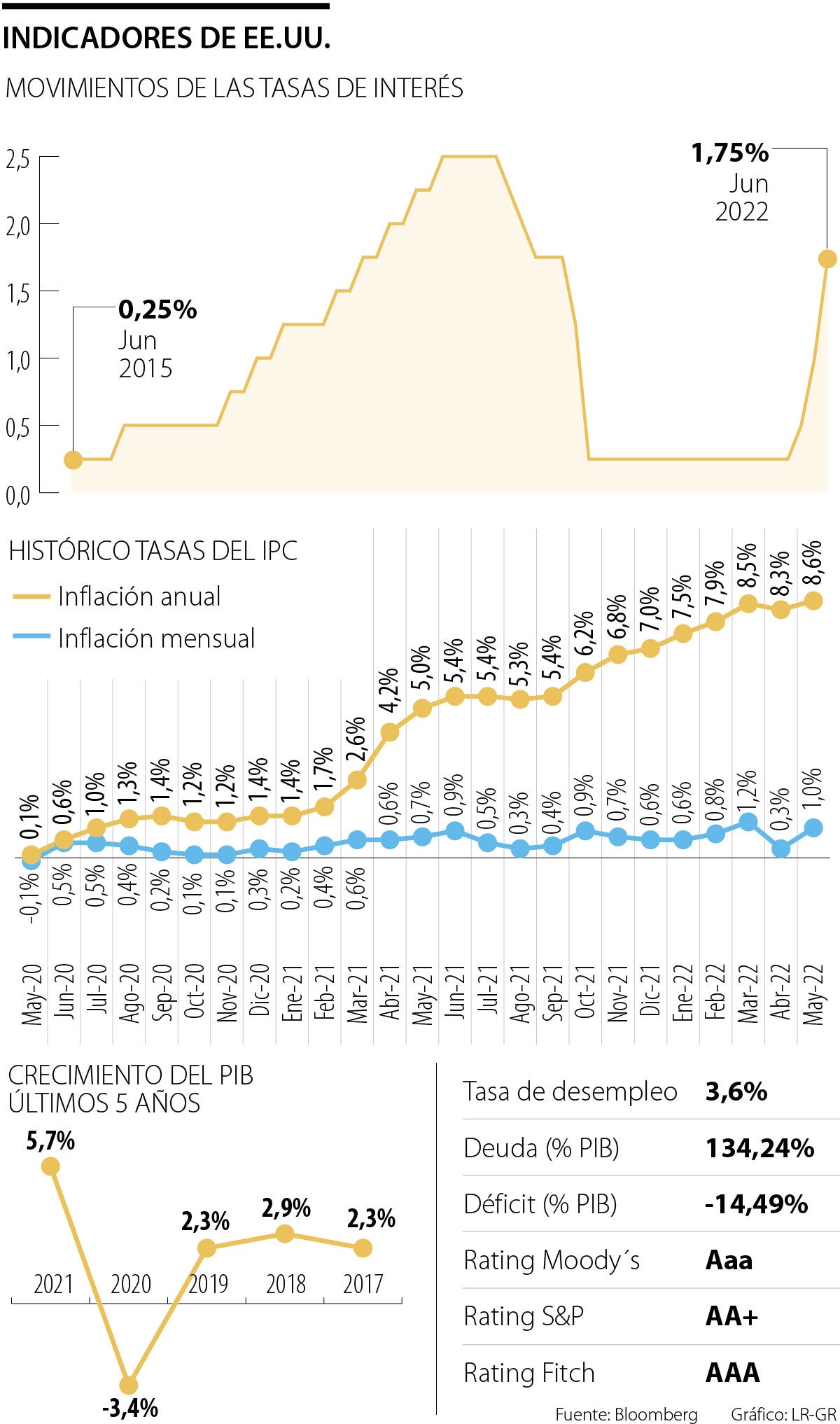 Los tipos de los fondos federales llegaron hasta 1,75%, en lo que fue el incremento más pronunciado desde 1994 y desplegó el endurecimiento más agresivo de la política monetaria en décadas para controlar la inflación galopante que está en 8,6%.