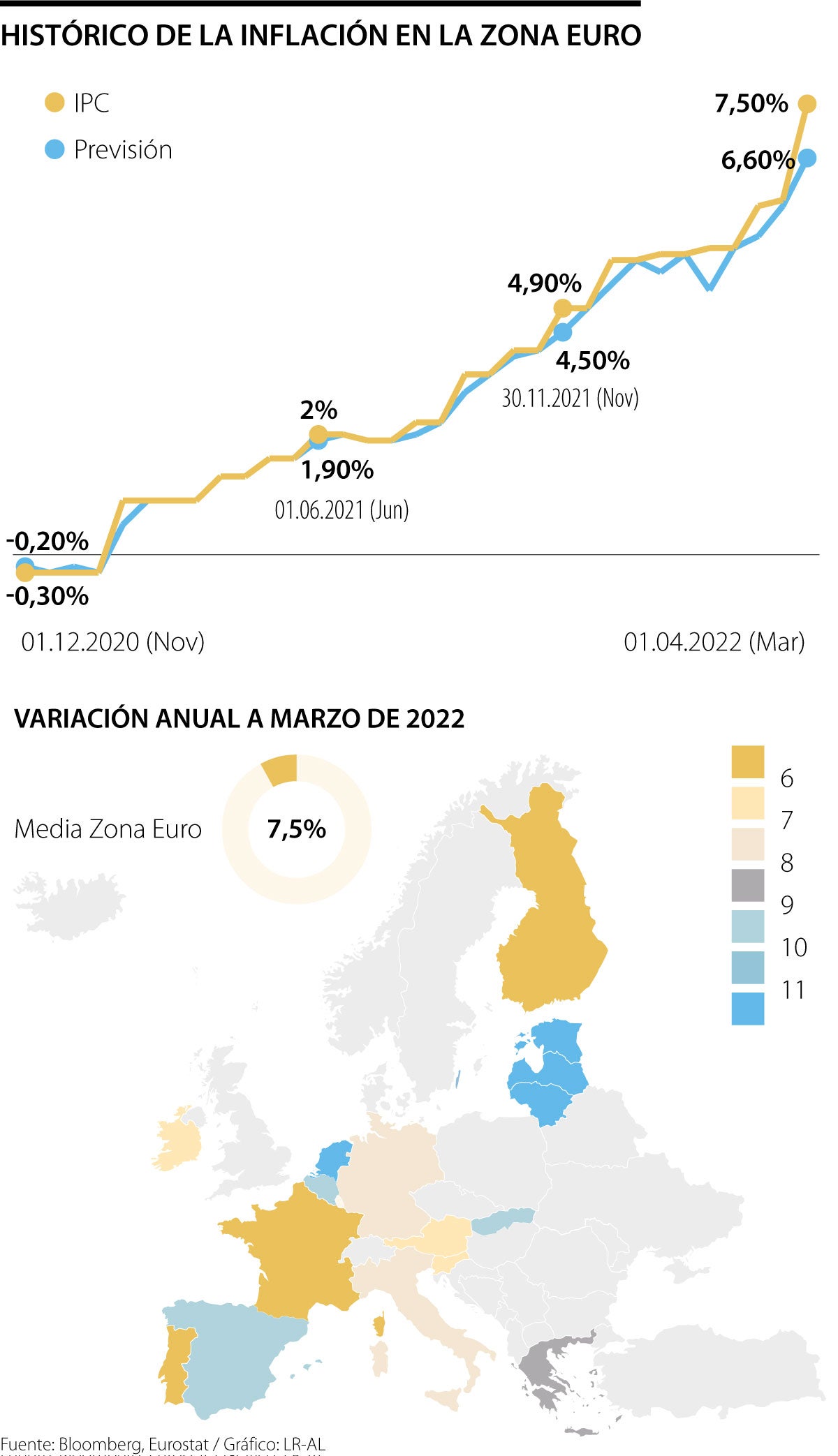 Marzo fue el mes con el alza más fuerte desde que se empezó a medir la inflación entre los países de la Unión Europea, el máximo de 23 años llegó a 7,50%, aún cuando las estimaciones del mercado financiero esperaban que fuera 6,60%.