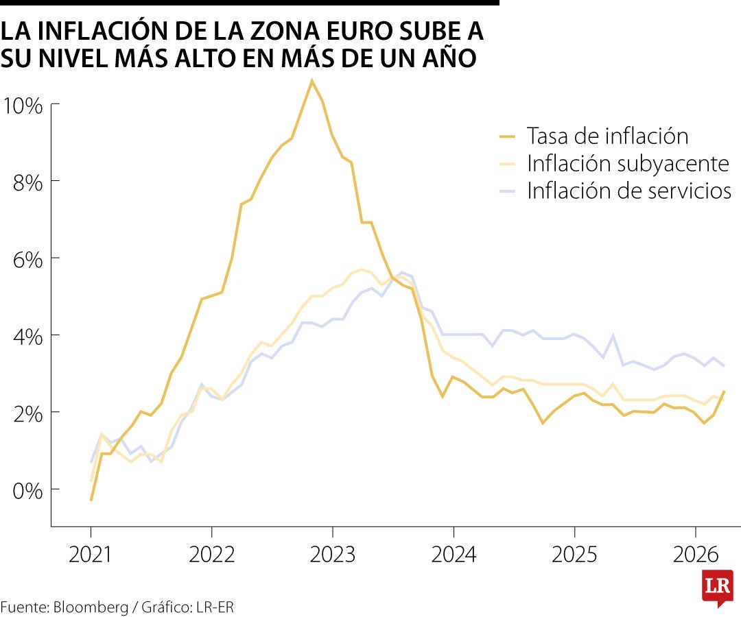 La zona euro experimentó su mayor aumento de la inflación desde 2022, debido a que la guerra con Irán elevó drásticamente los costes energéticos, lo que respalda las expectativas de que el Banco Central Europeo tendrá que subir los tipos de interés.