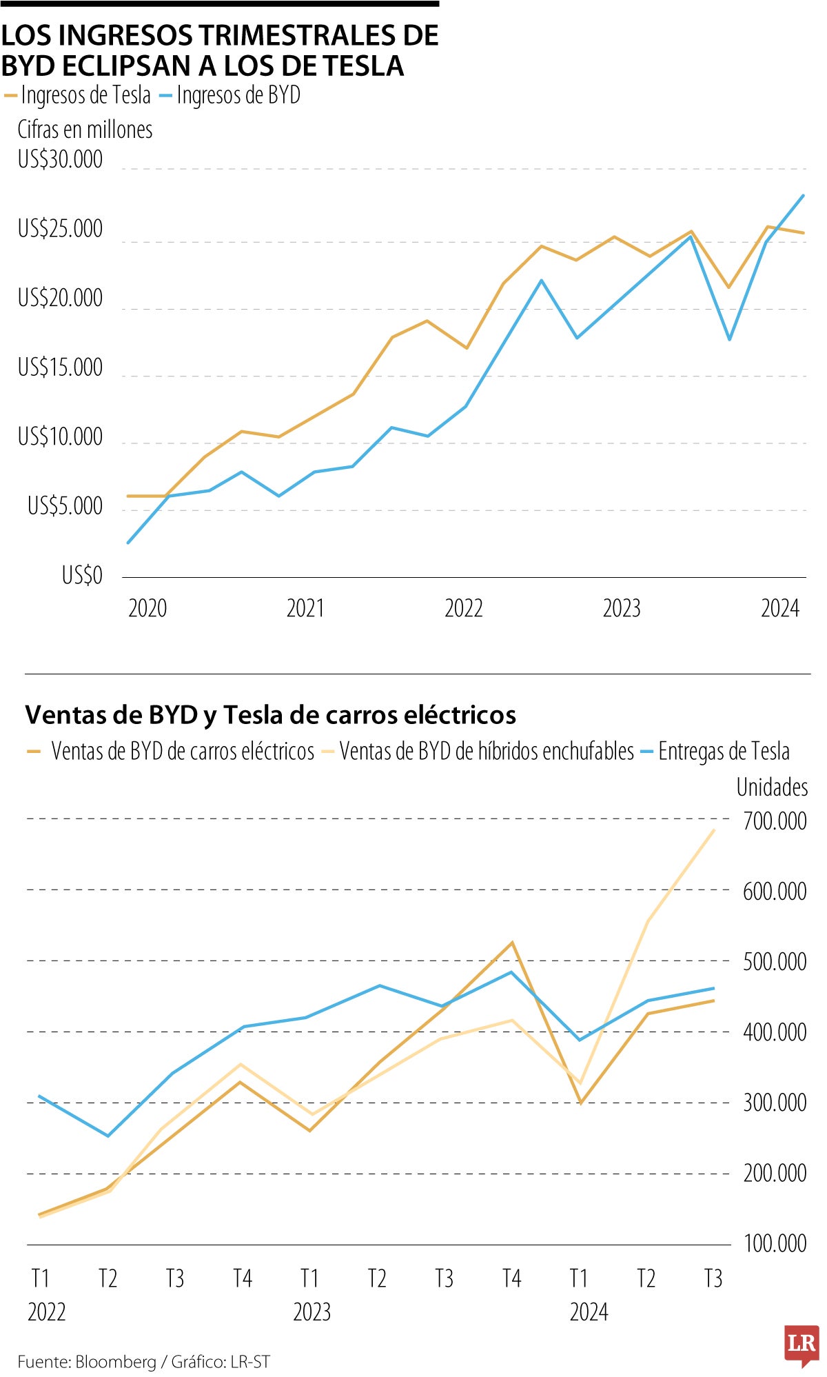 BYD logró otra victoria sobre Tesla el miércoles, informando ingresos trimestrales que superaron al fabricante de automóviles de Elon Musk por primera vez desde que ambos se enfrentaron en las ventas globales de vehículos eléctricos.