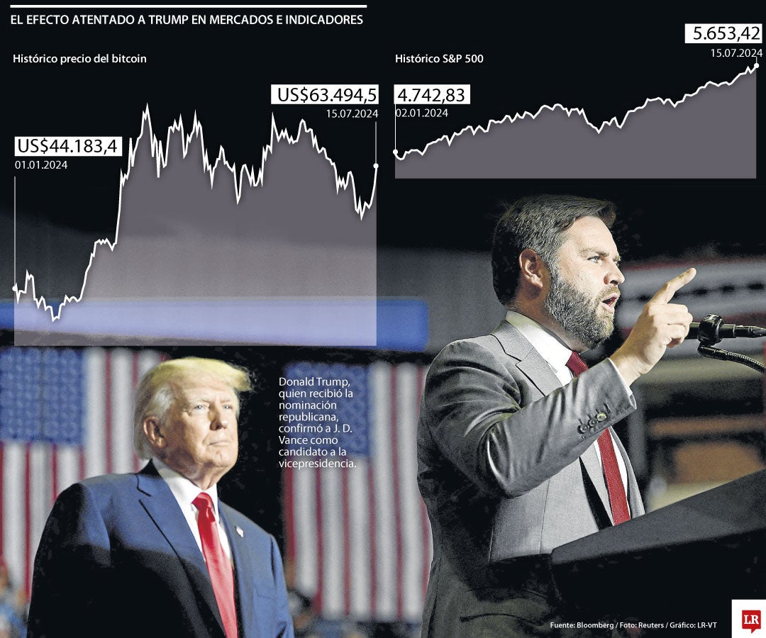 La imagen de Trump con sangre en el rostro, el puño al aire y algunos viéndolo como un “héroe”, aumentó las apuestas por quienes creen que llegará a la presidencia. Por eso, Wall Street saltó, el bitcoin también y entre los ganadores están las acciones de su empresa Trump Media & Technology Group.