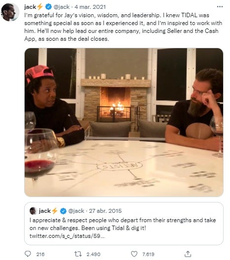 Jack Dorsey y Tidal, el servicio de streaming de Jay-Z