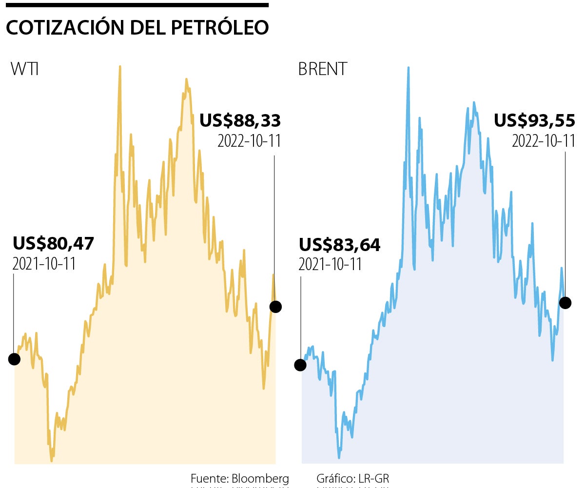 En la jornada de ayer, el West Texas Intermediate (WTI) bajó 2,81%, hasta un valor de US$88,51 el barril y el Brent cayó 2,70% a un precio de US$93,51.