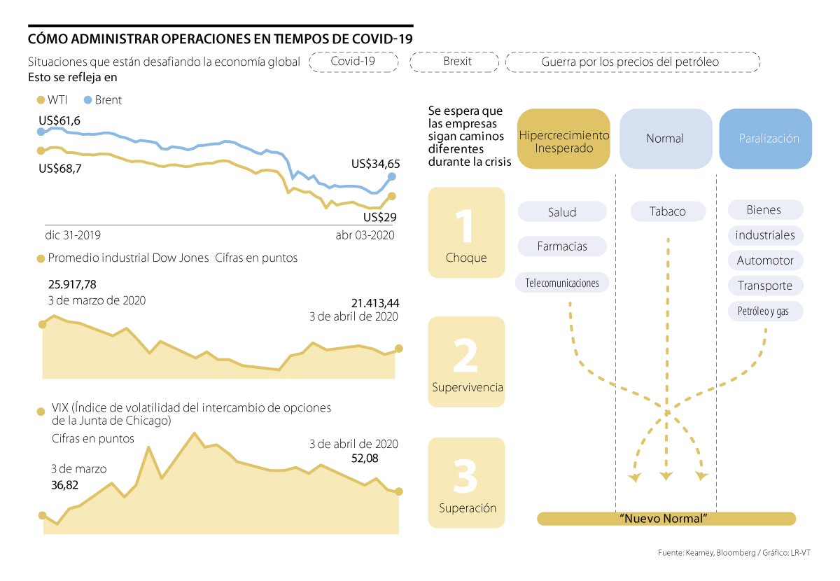 Las recomendaciones de la empresa de consultoría estadounidense se basan en que las compañías están tomando caminos completamente diferentes durante la crisis por el virus que tiene tres momentos. Durante el periodo de choque se ha presentado un hipercrecimiento de las firmas de sectores como salud, farmacéutico y telecomunicaciones, mientras que la industrias como la del tabaco siguen su rumbo normal y el segmento automotriz, de transporte y petróleo afrontan la peor cara de la crisis.
