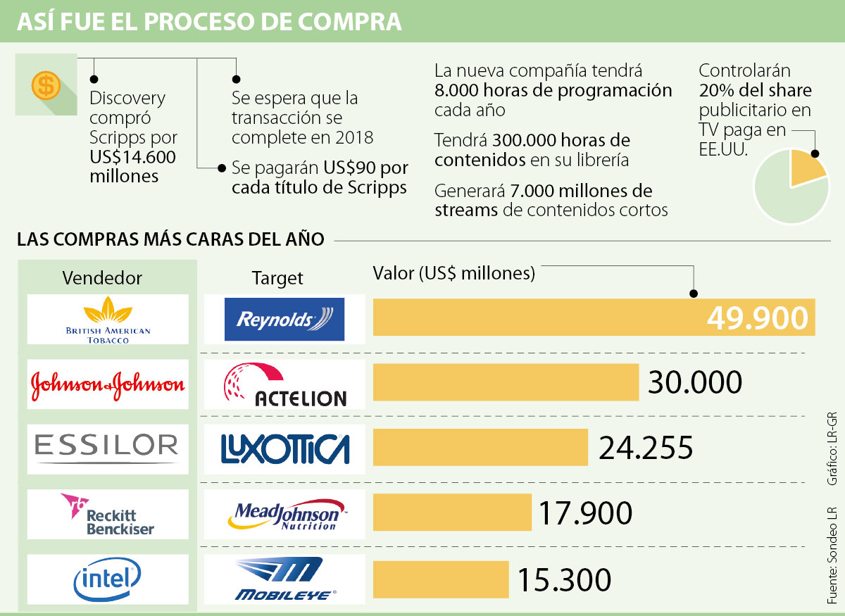 La transacción que anunció ayer Discovery, con la que compró a la cadena de televisión Scripps, no solo es la sexta movida más cara en lo que va del año, sino que también crea una empresa que se quedará con 20% del share publicitario de la televisión paga en Estados Unidos.